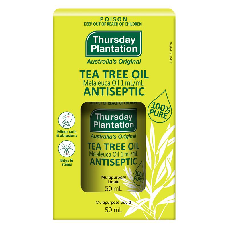 Thursday Plantation Tea Tree Oil is Australia’s natural antiseptic, distilled from the leaves of the Melaleuca alternifolia, a plant native to the coastal regions of northern New South Wales and southeastern Queensland. This 100% pure and natural essential oil is a powerful antiseptic, known for its ability to inhibit a wide range of bacteria and fungi, and is effective in cleansing and protecting skin abrasions.